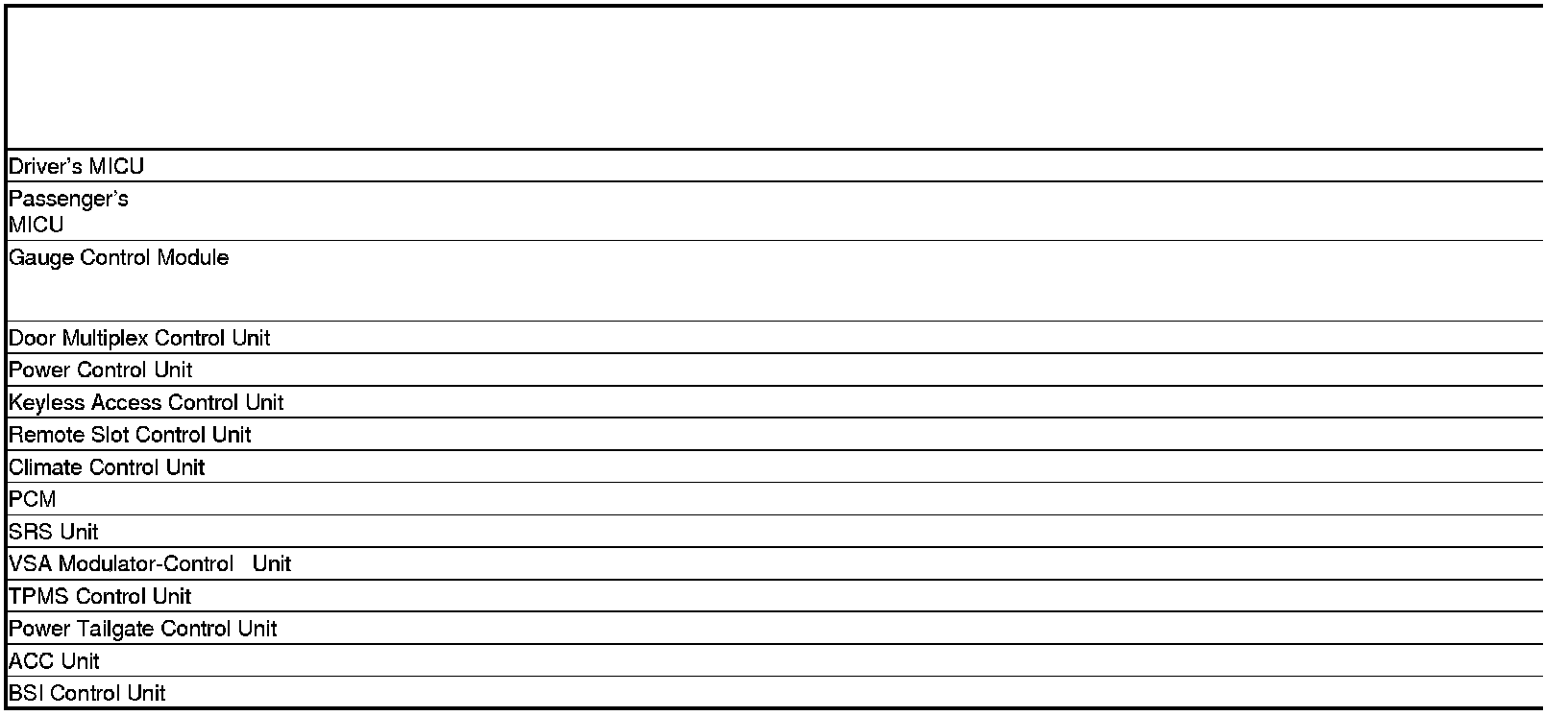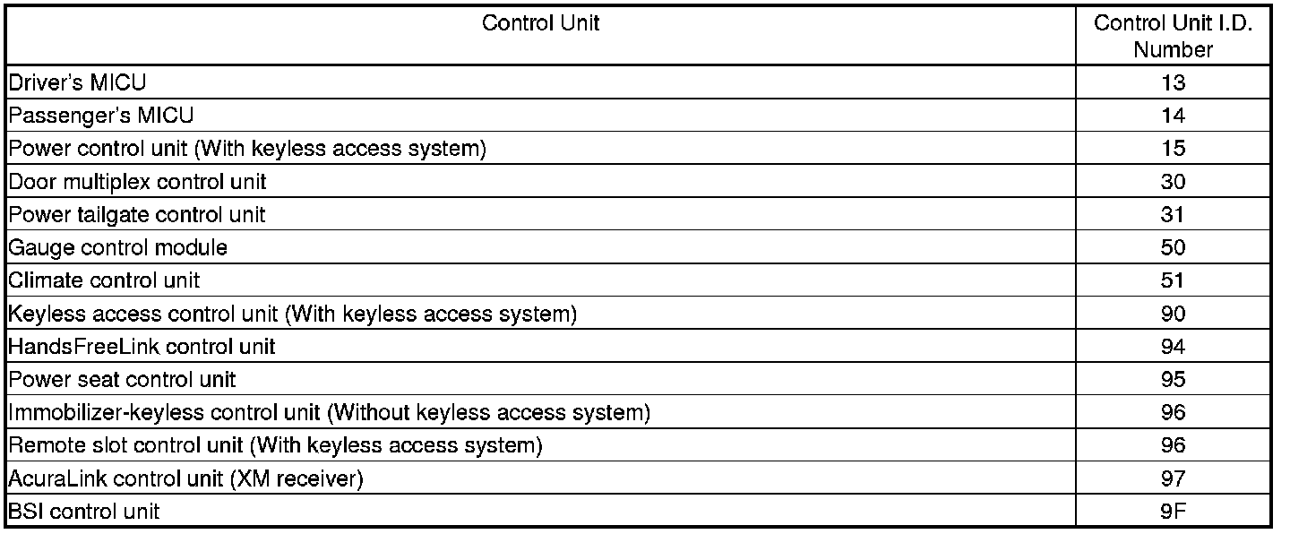 When an ECU on the CAN circuit is unable to communicate with the other ECUs on the B-CAN and F-CAN circuits, the other control units set loss of communication DTCs. Use this chart to find the control unit that is not communicating with the other control units on the CAN circuits.