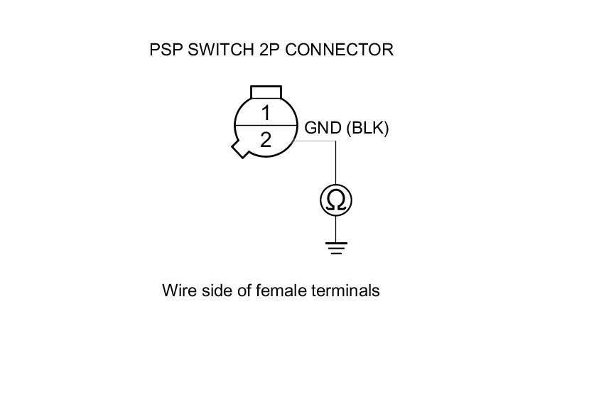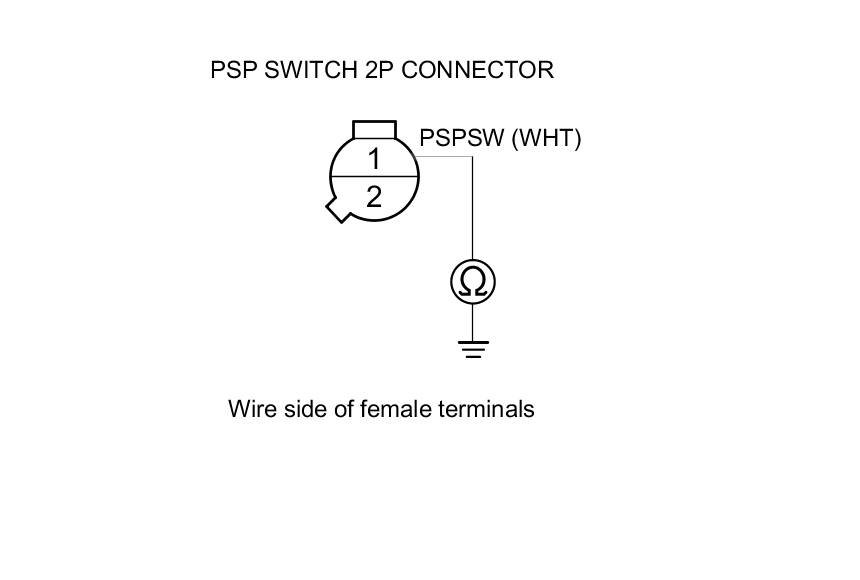 13. Check for continuity between PSP switch 2P connector terminal No. 1 and body ground.