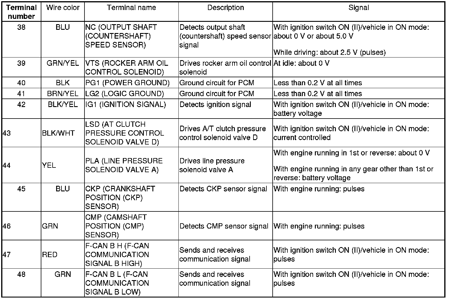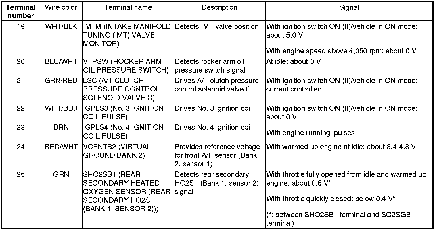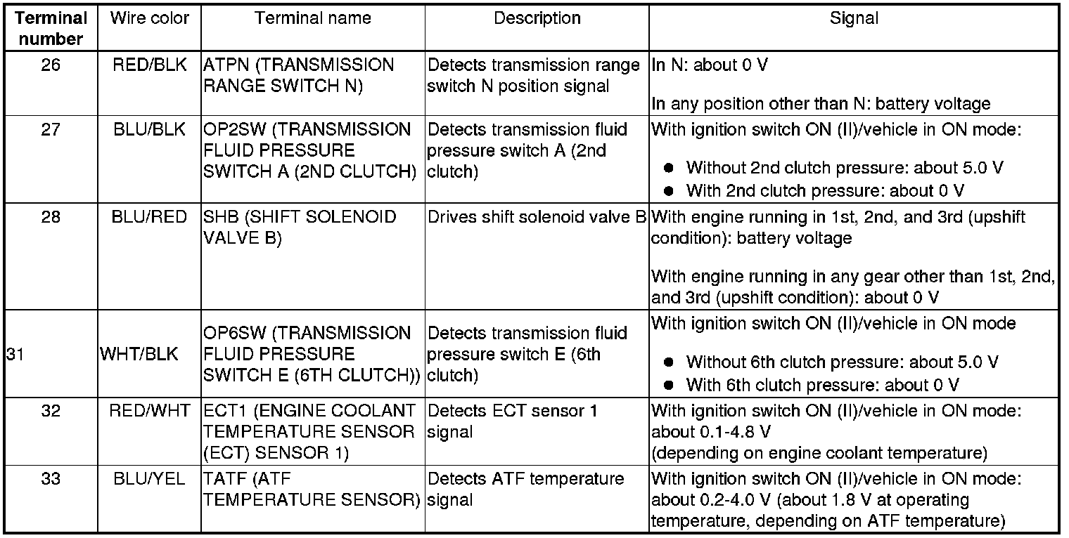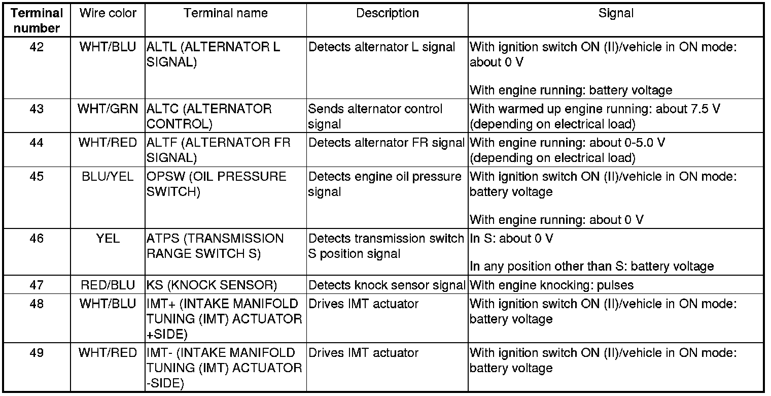 PCM Inputs and Outputs at PCM Connector A (square) (49P)