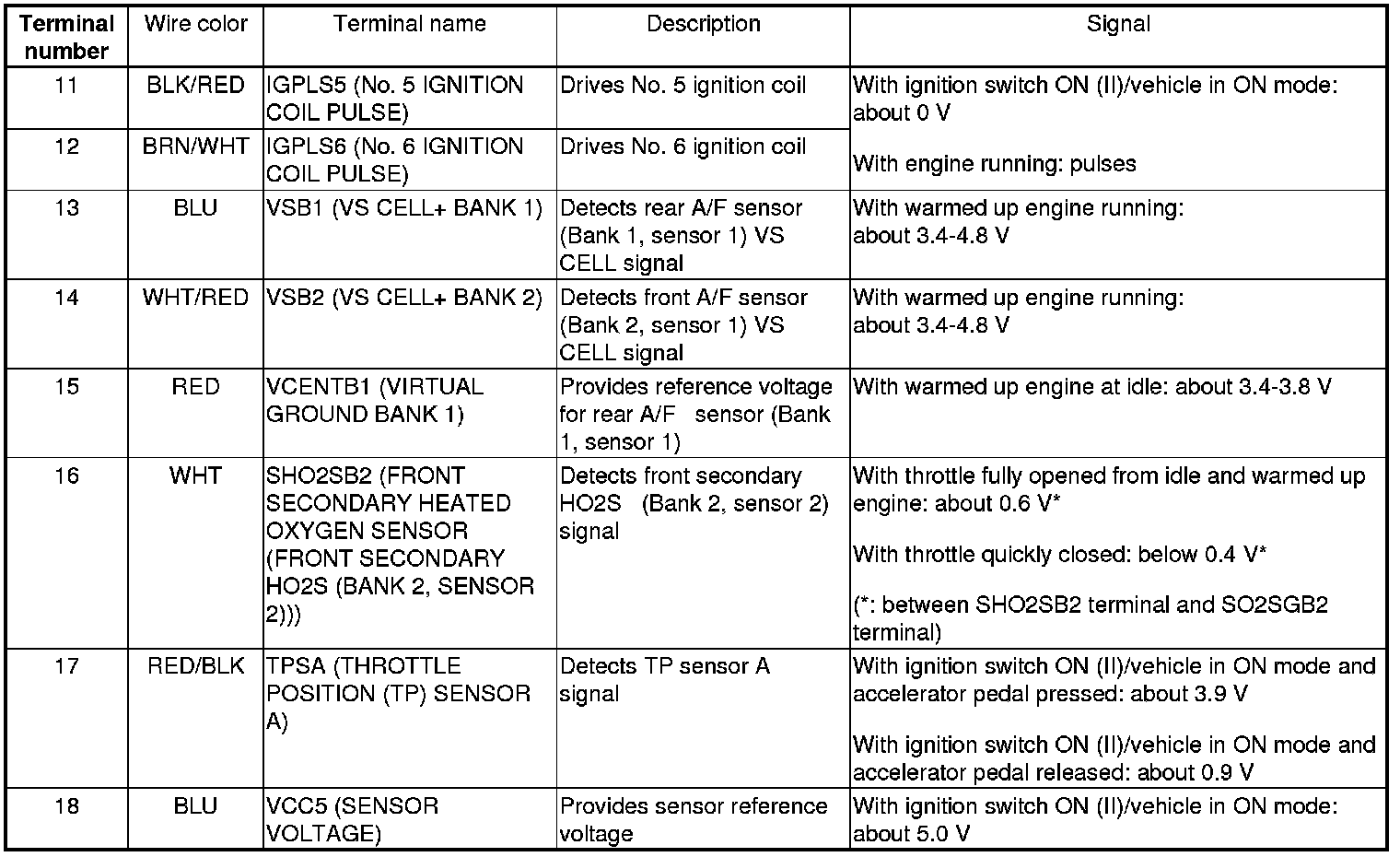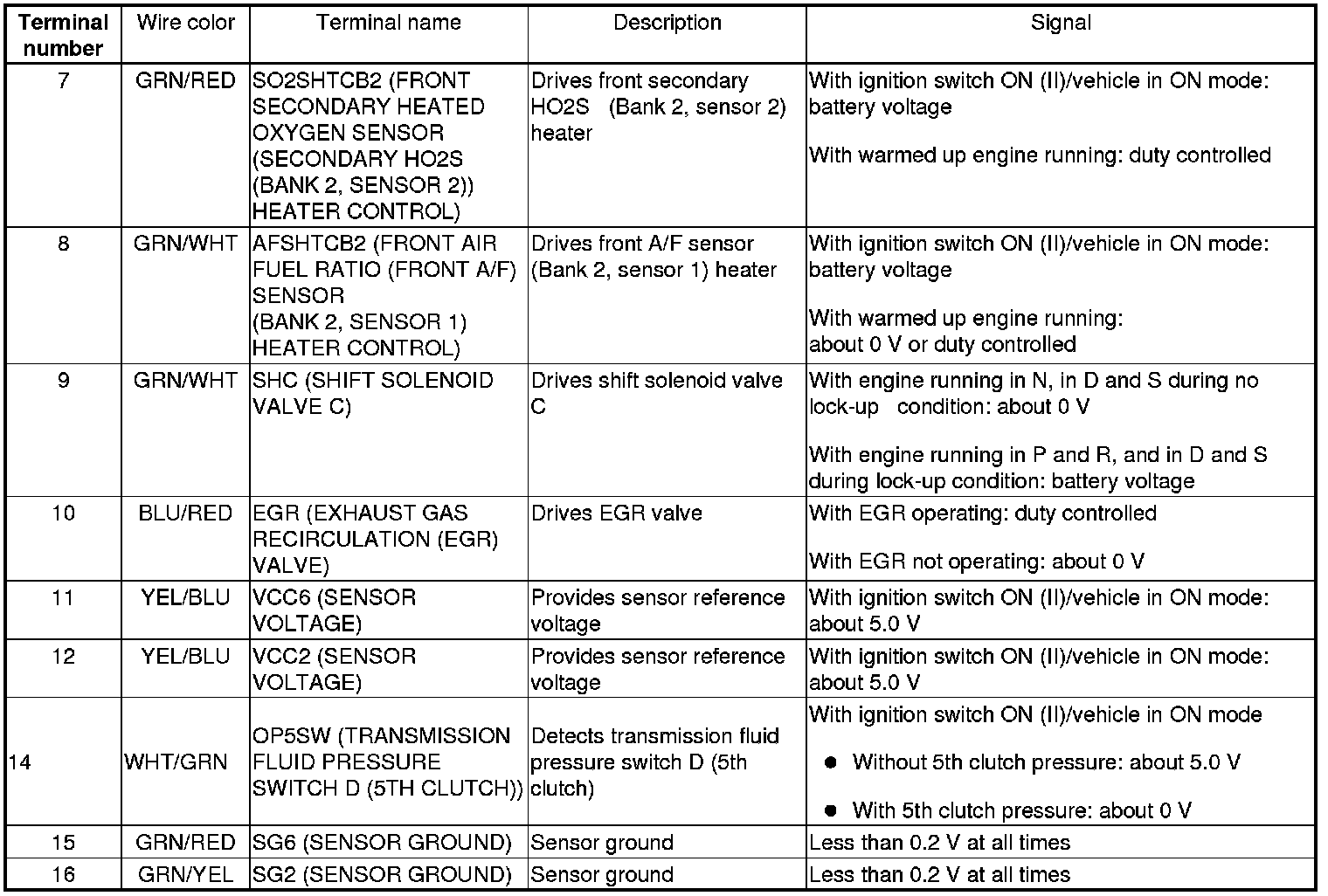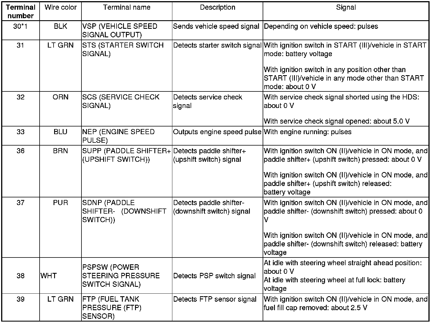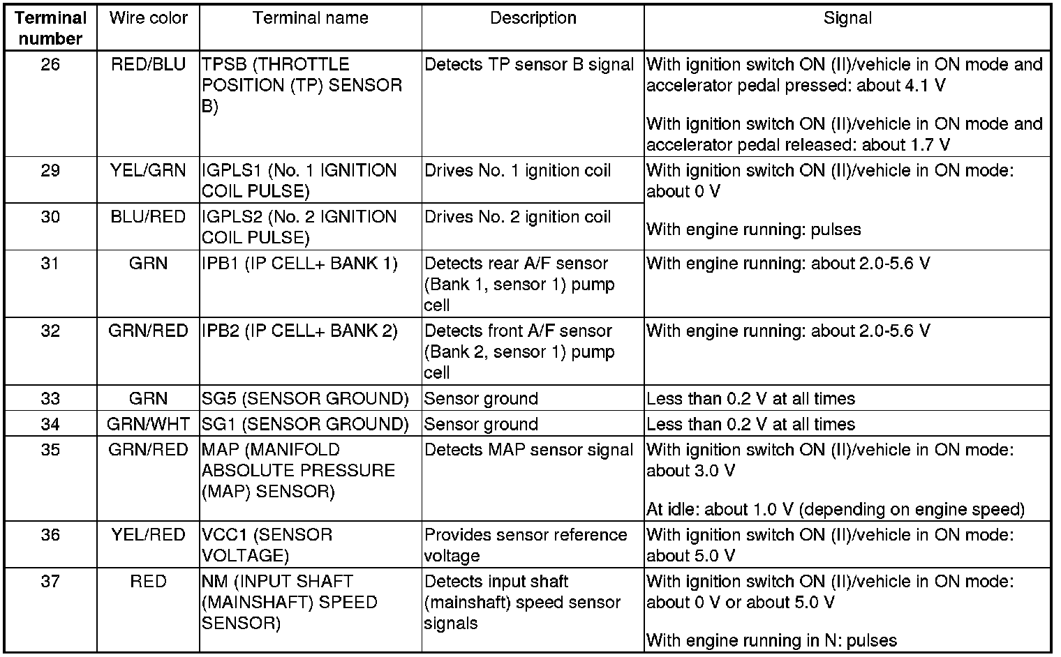 PCM Inputs and Outputs at PCM Connector A (square) (49P)