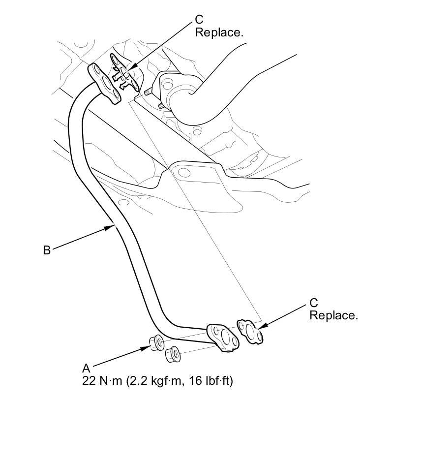 6. Install the parts in the reverse order of removal with new gaskets (C).