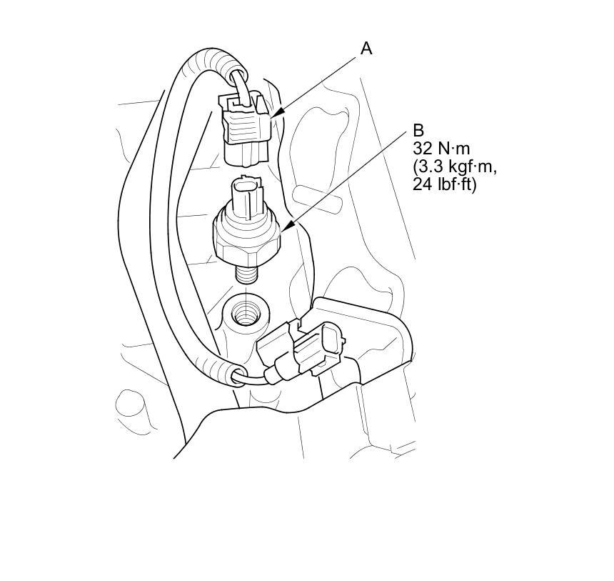3. Disconnect the knock sensor 1P connector (A), then remove the knock sensor (B).