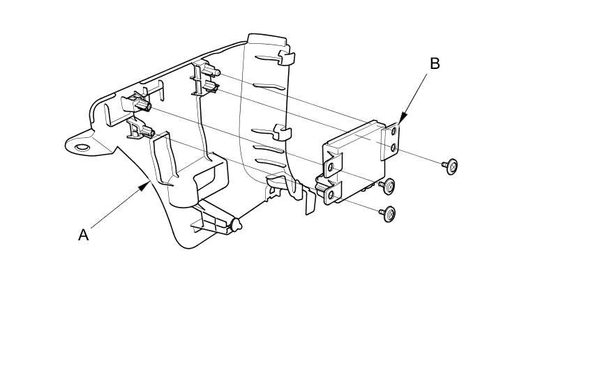 2. Remove the screws from the kick panel (A), then remove the BSI control unit (B).