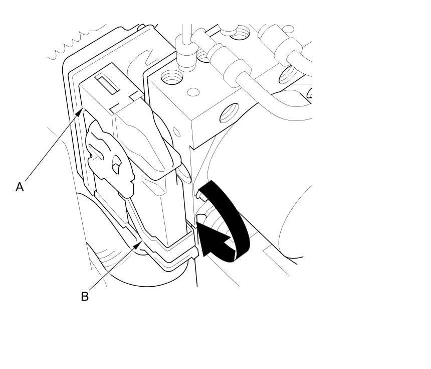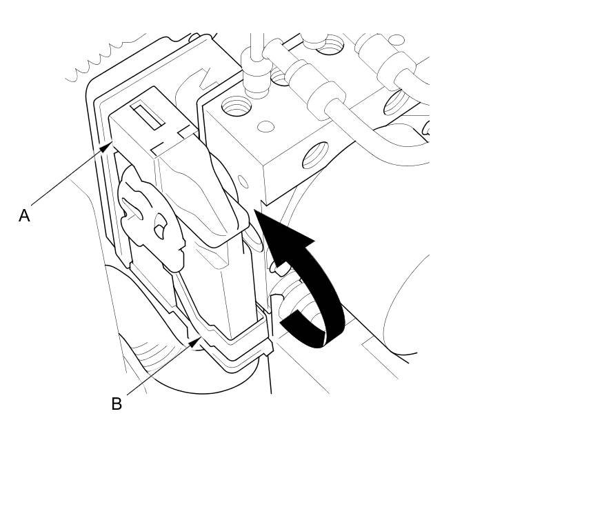 4. Disconnect the VSA modulator-control unit 46P connector (A) by pulling up the lever (B); the connector disconnects itself.