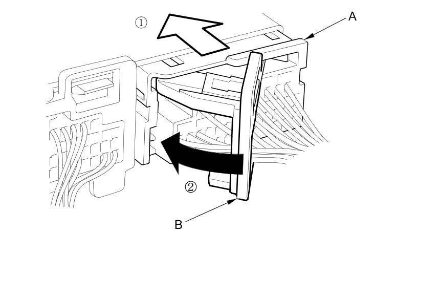 To release the lock (A), pull the lever (B) while pushing the lock on the outside of the connector, then pull out the connector (C).