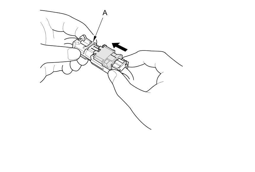 Hold both connector halves, and press them firmly together until the projection (A) of the sleeve-side connector clicks.