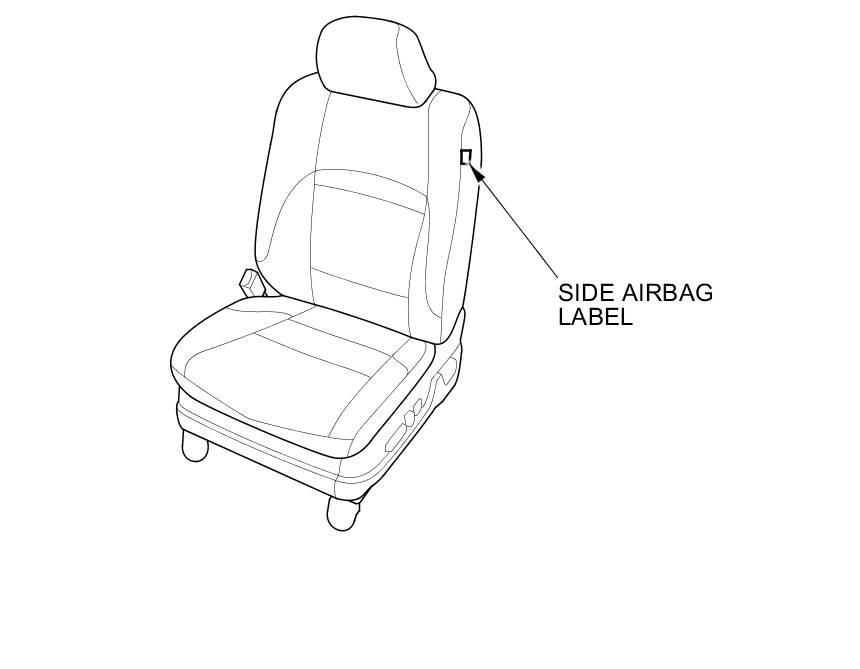 Front seats with side airbags have a "SIDE AIRBAG" label on the seat-back.