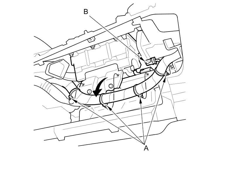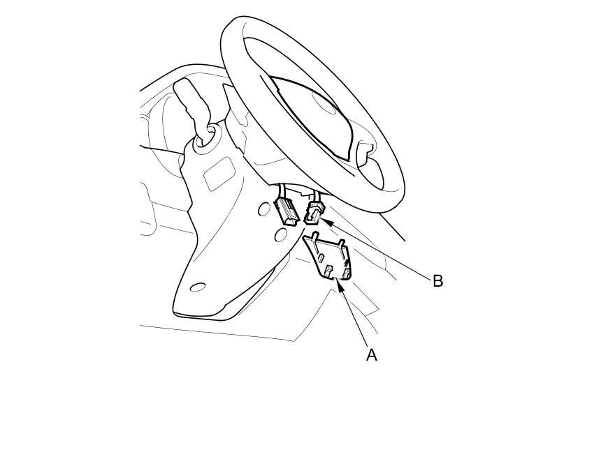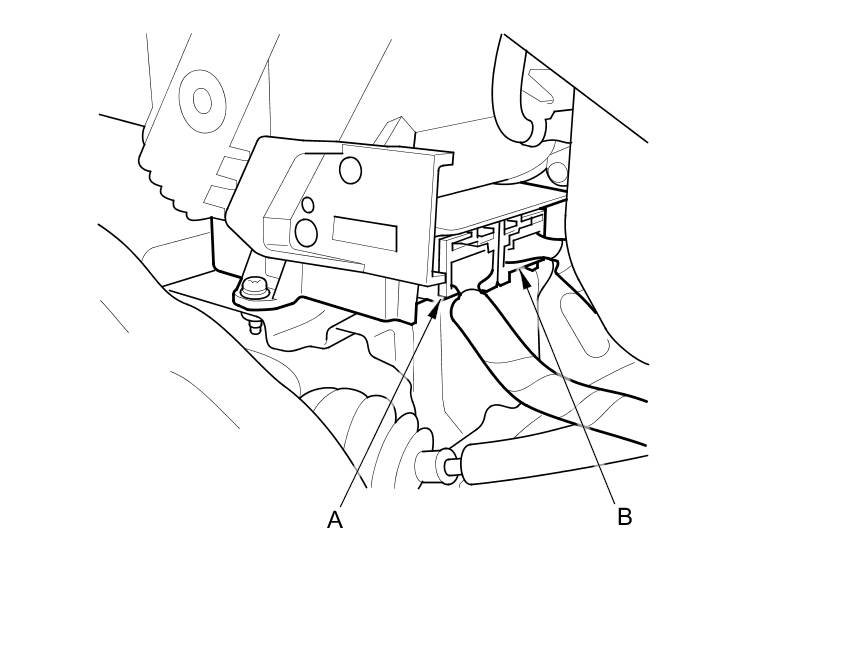 To reconnect the connector (A), push in on the connector. As the connector is pressed in, the lever (B) moves to the locked position.