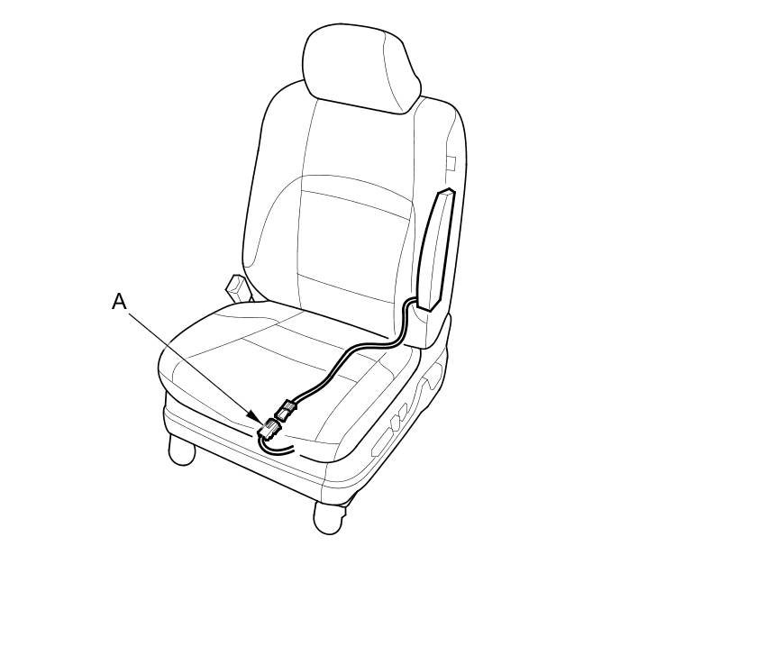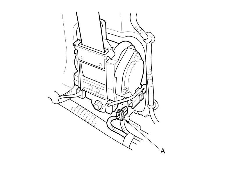 11. Disconnect the driver's and the front passenger's seat belt tensioner 4P connectors (A) on the floor wire harness.
