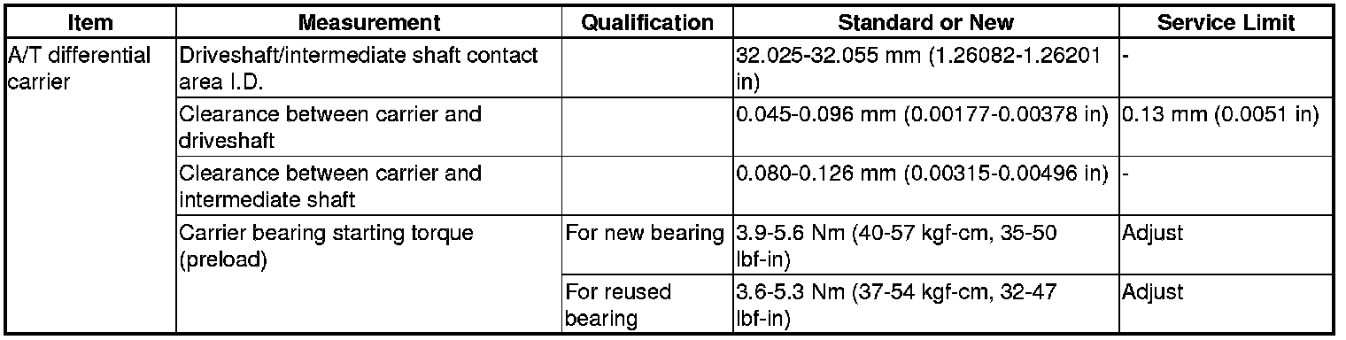 A/T Differential Carrier Specification(s)