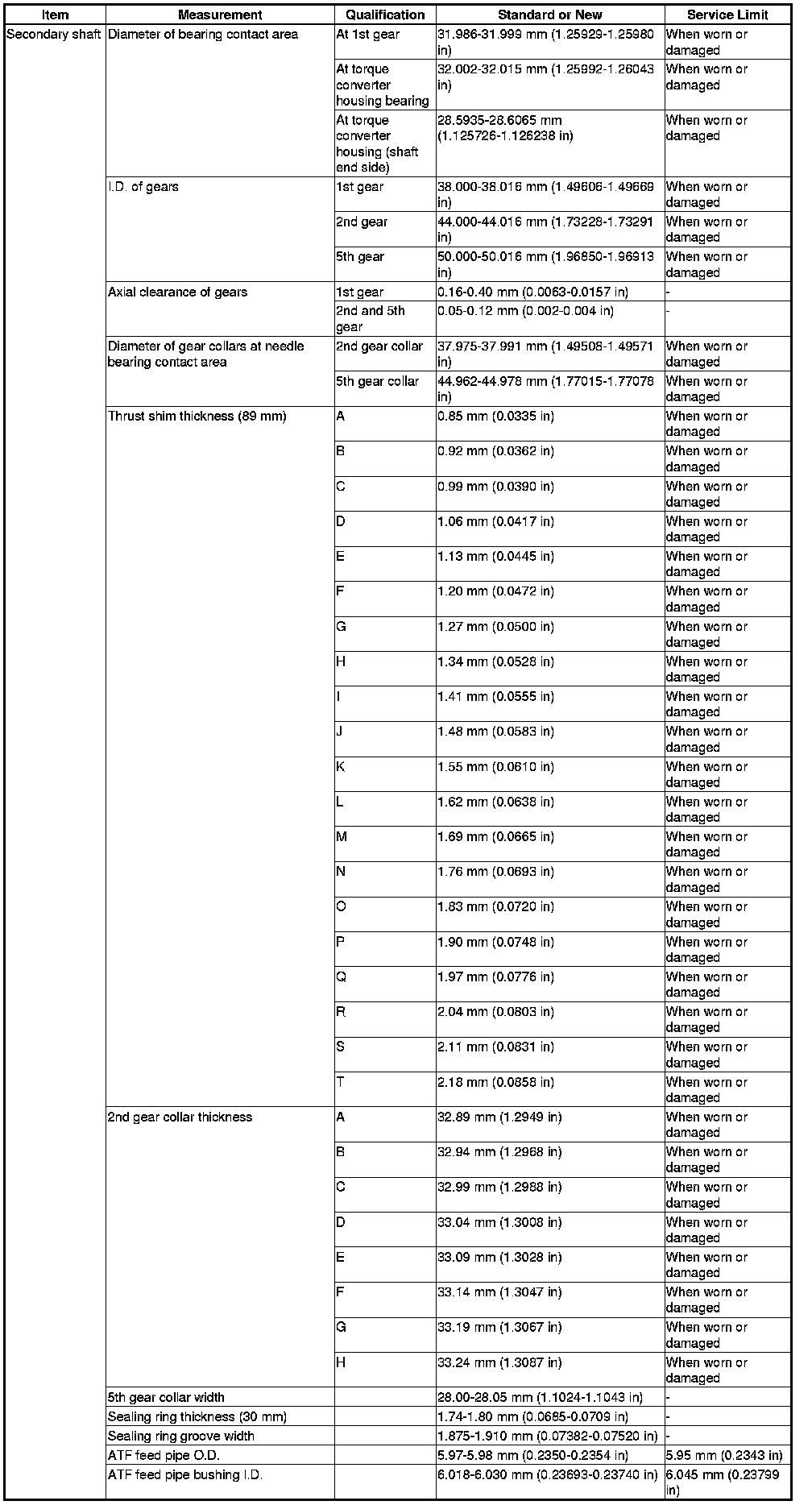 Secondary Shaft Specification(s)