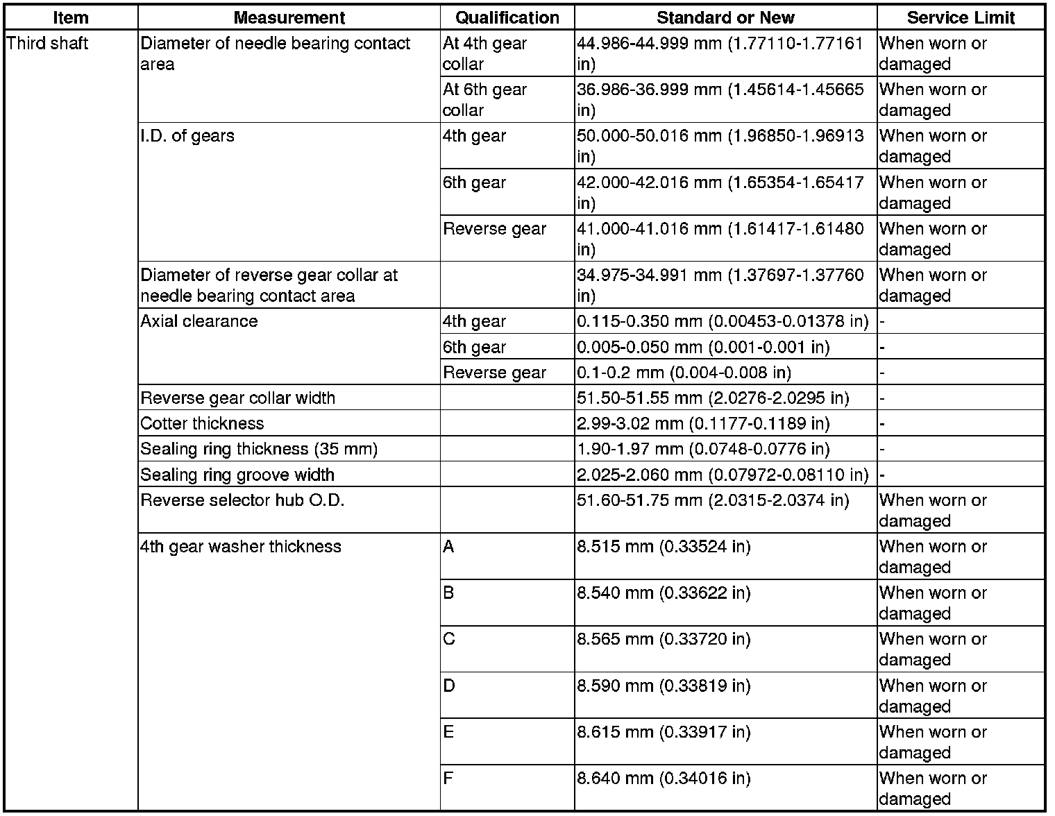 Third Shaft Specification(s)