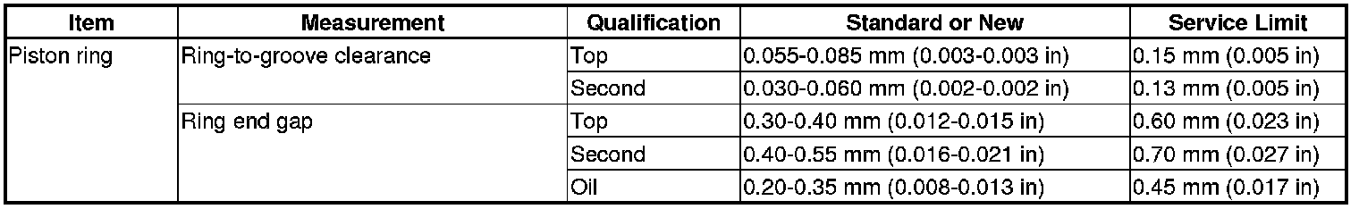 Piston Ring Specification(s)