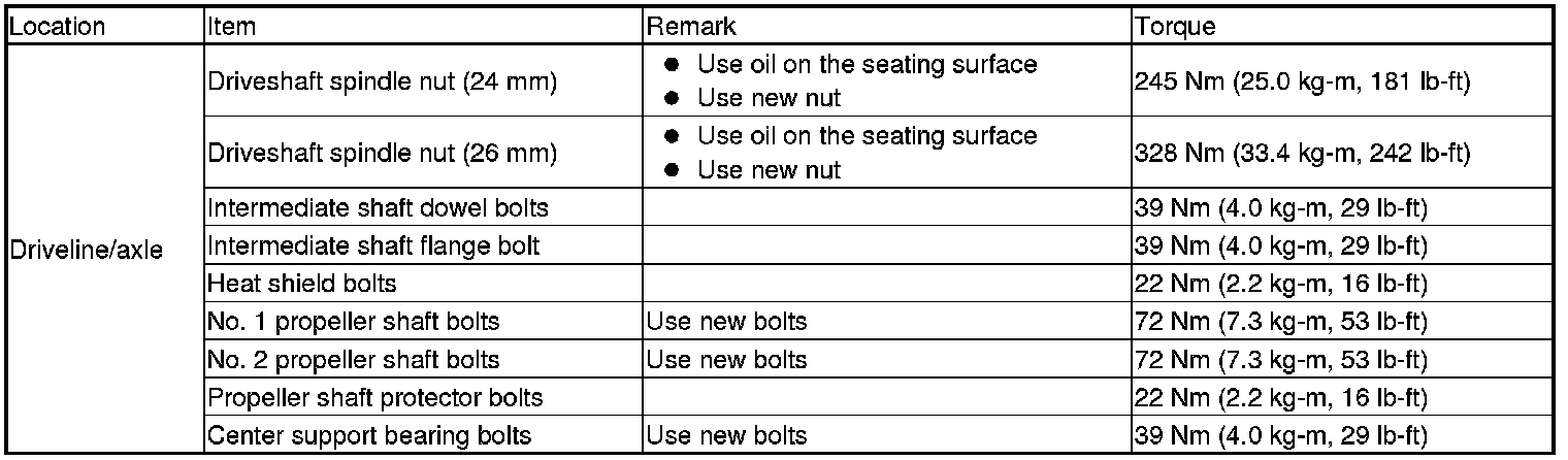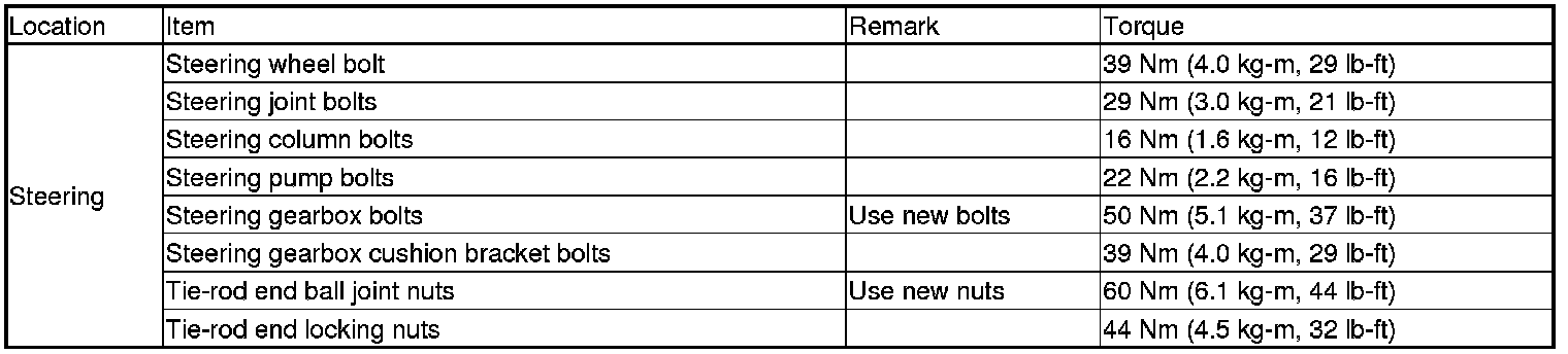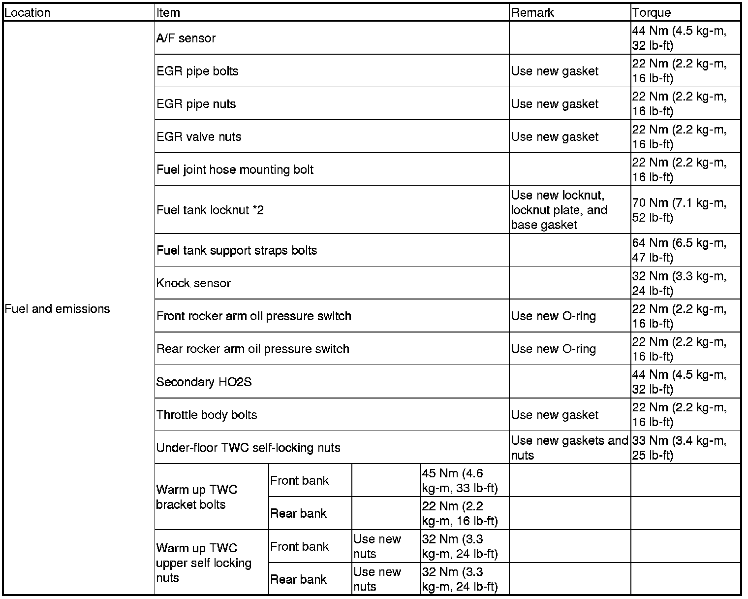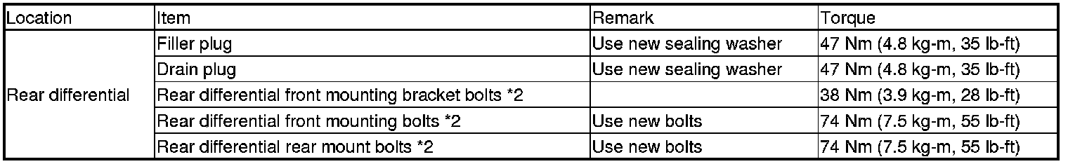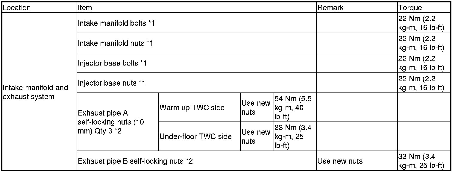 Torque Specifications (USA and Canada Models)