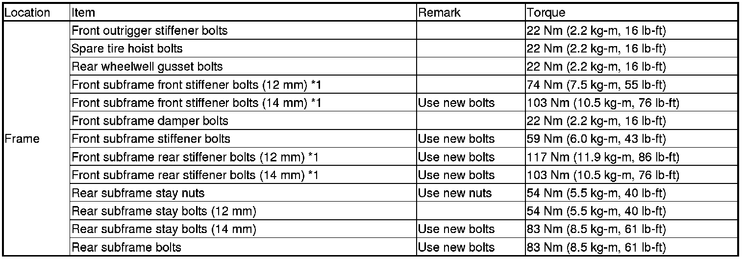 *Refer to each S/M section for the bolts/nuts not indicated here.