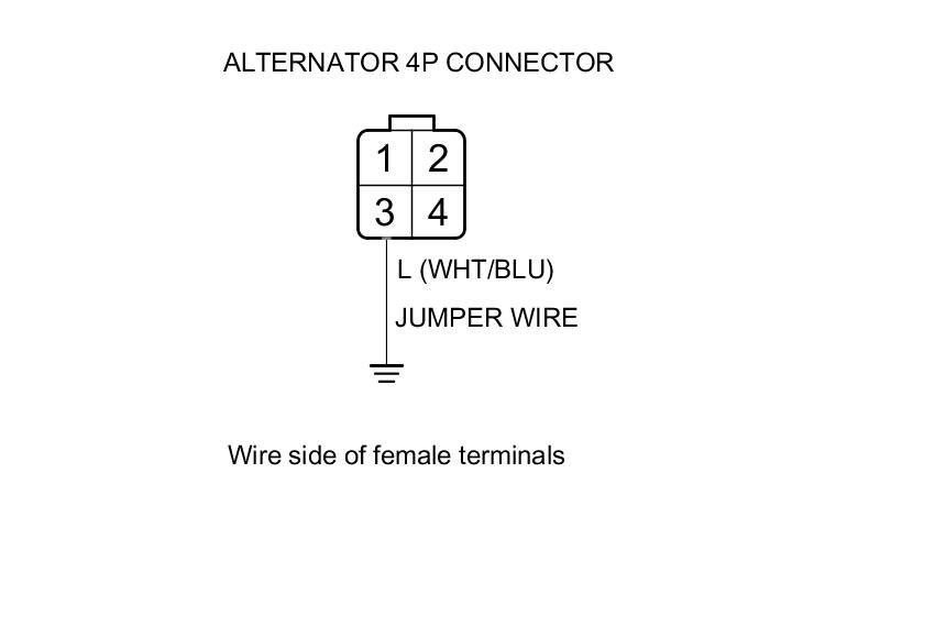 17. Connect alternator 4P connector terminal No. 3 and body ground with a jumper wire.