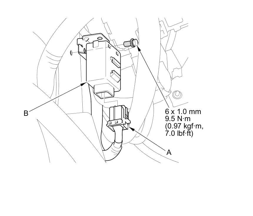 4. Disconnect the connector (A) from the ECPS control unit (B), then remove the control unit.