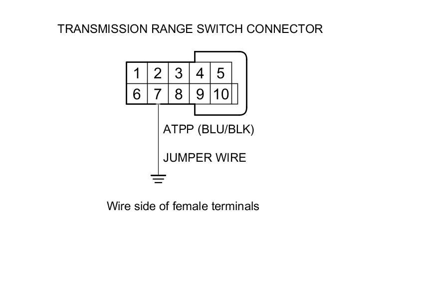 25. Connect a jumper wire between transmission range switch connector terminal No. 7 and body ground.