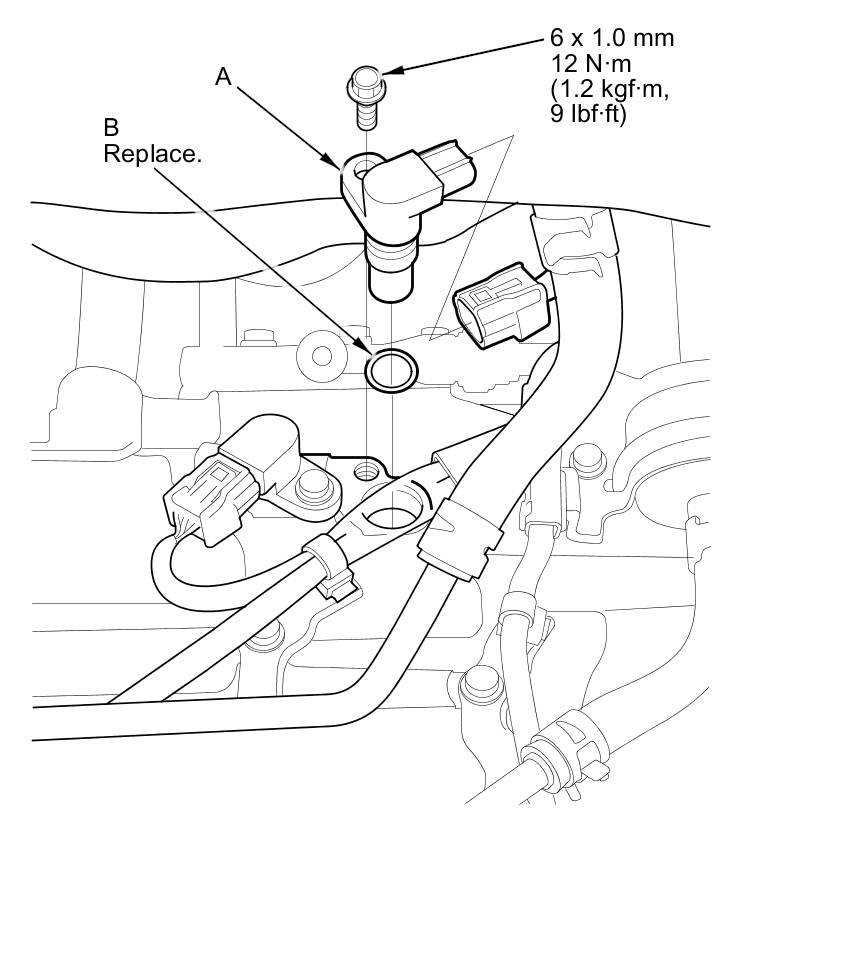 4. Install a new O-ring (B) on the new output shaft (countershaft) speed sensor, then install the output shaft (countershaft) speed sensor.