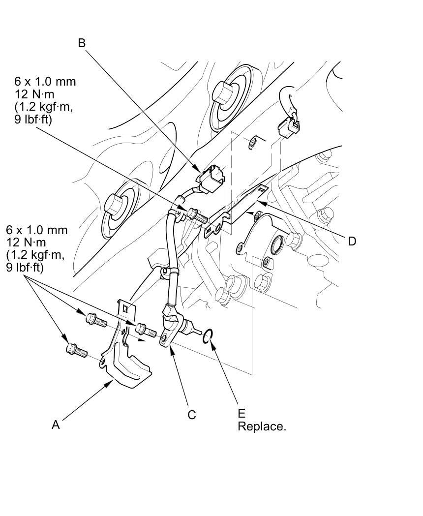 4. Install the rear differential fluid temperature sensor with a new O-ring (E) in the reverse order of removal.