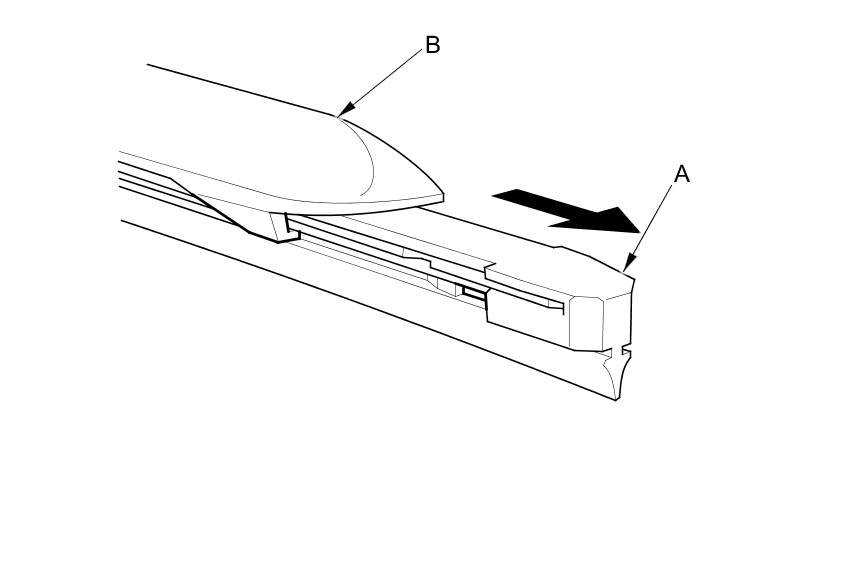 3. Slide the wiper blade (A) out from the wiper holder (B).
