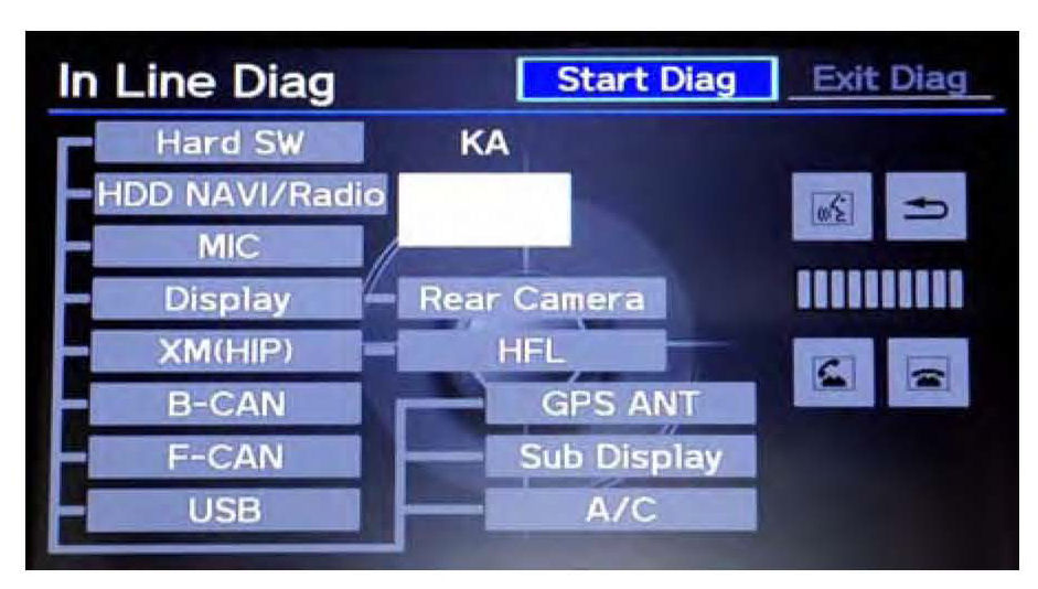 2. You may see the factory In-Line Diagnosis screen below. If so, do the following or this screen will return every time the vehicle is started. If the screen does not appear, go to step 3.