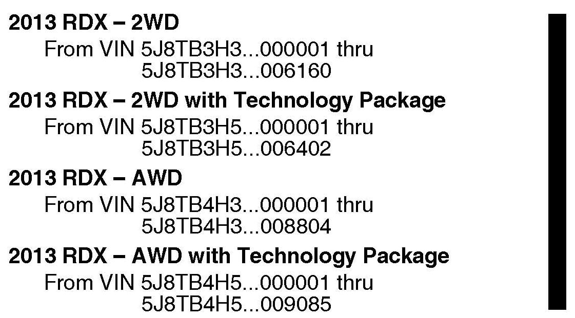 See VEHICLES AFFECTED*