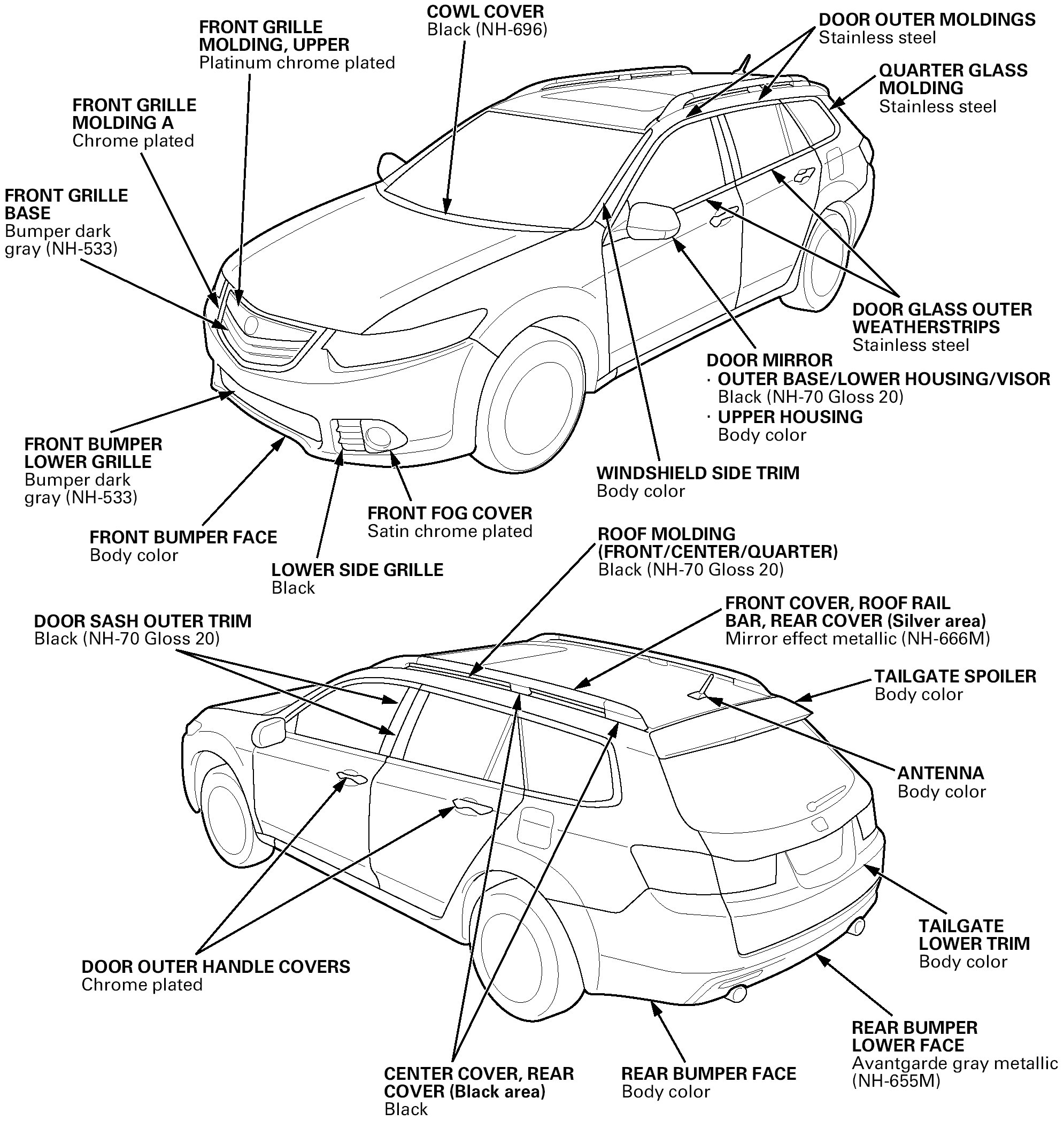 - Apply black paint to the visible surfaces of the front wheelhouse, the rear wheelhouse, and the tie down hook after repairing and painting (except vehicles painted black).
