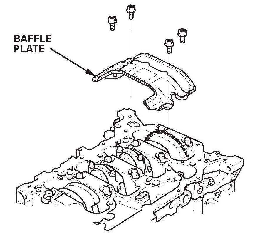 63. Install the baffle plate, and torque the bolts to 12 Nm (8.7 lb-ft).