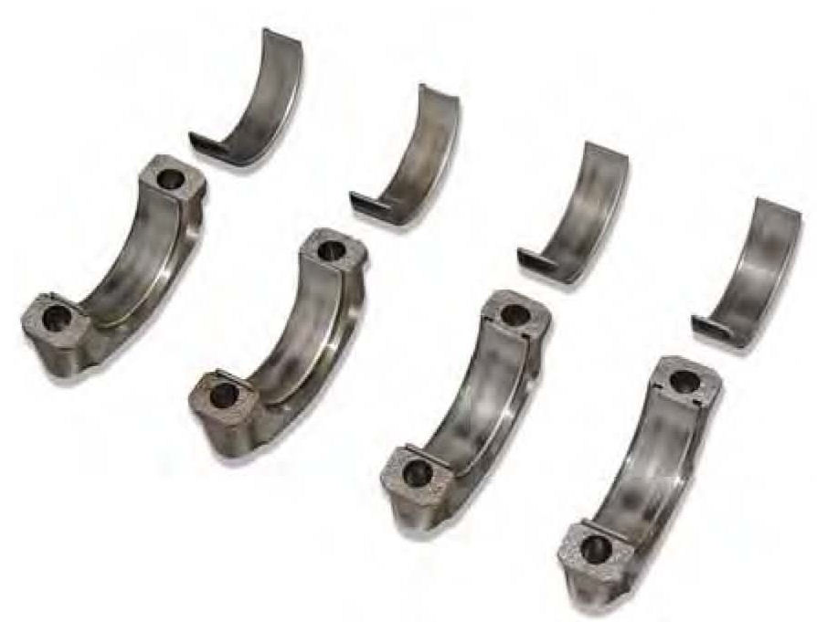 If your fingernail catches on a scratch or groove in the bearing, replace it. Pictured are normal reusable rod bearings after about 35,000 miles. Some discoloration is normal and does not require replacement.