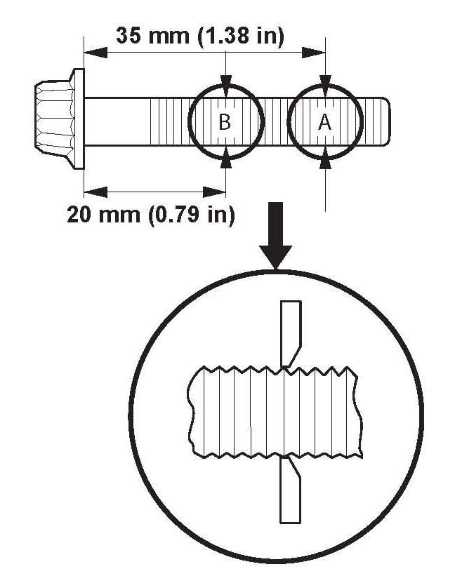 ^ If either diameter is less than 10.8 mm (0.417 in), replace the cylinder head bolt.