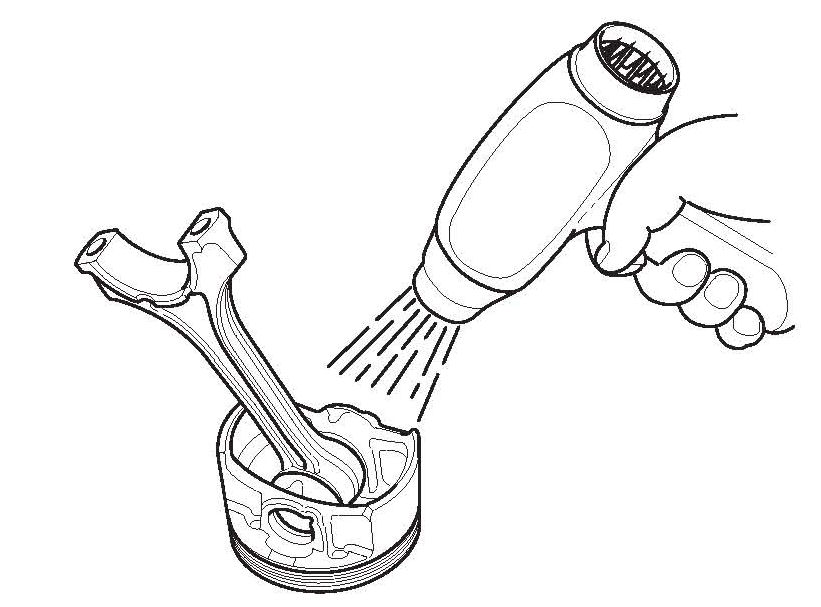 When the piston and the rod end are heated properly, the piston pin should slide into position relatively easily. You will damage the piston if you try to use a hammer or a press to force the piston pin in.