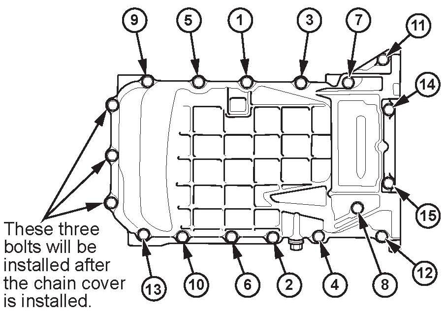 78. Tighten the bolts in three steps. In the final step, torque all bolts, in sequence, to 12 N.m (9 lb-ft).
