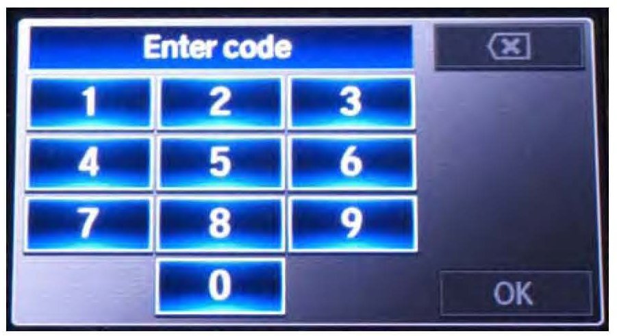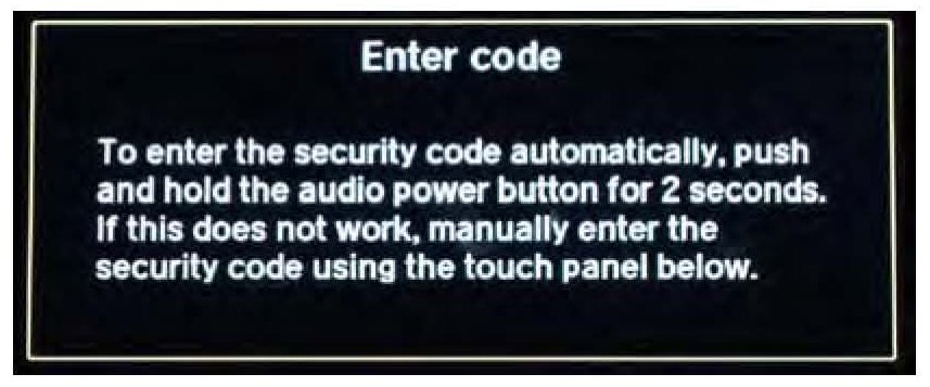 8. Press the engine start/stop button to select the vehicle ON mode. Once the Enter code screens appear, press and hold the power button for 2 seconds until you hear the beep.