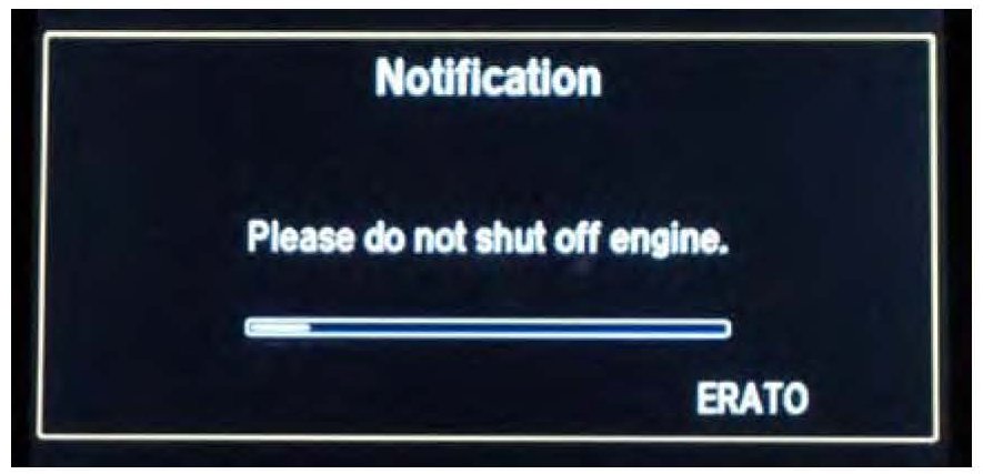 6. When the recovery process is complete, the audio-navigation system resumes the update automatically. Go to step 5 of the REPAIR PROCEDURE to continue the update and confirm the update was successful.