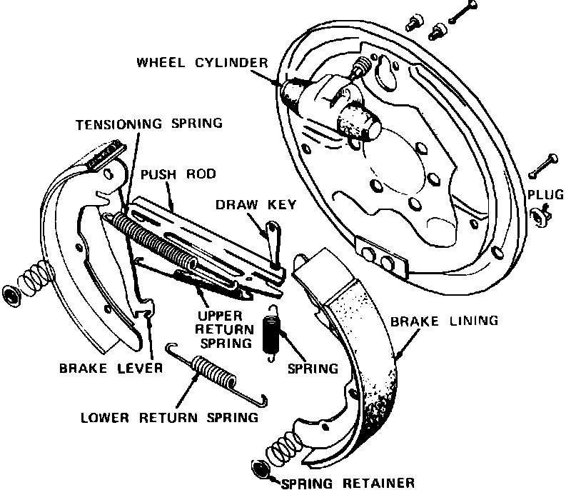 - To inspect brake lining thickness, condition, remove plug on lower surface of backing plate.