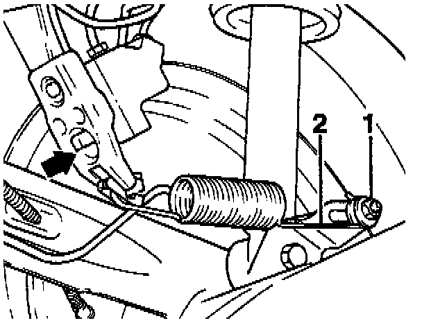 4. Mount tension spring - 2 - between brake pressure regulator and plastic roller behind nut so no play exists.