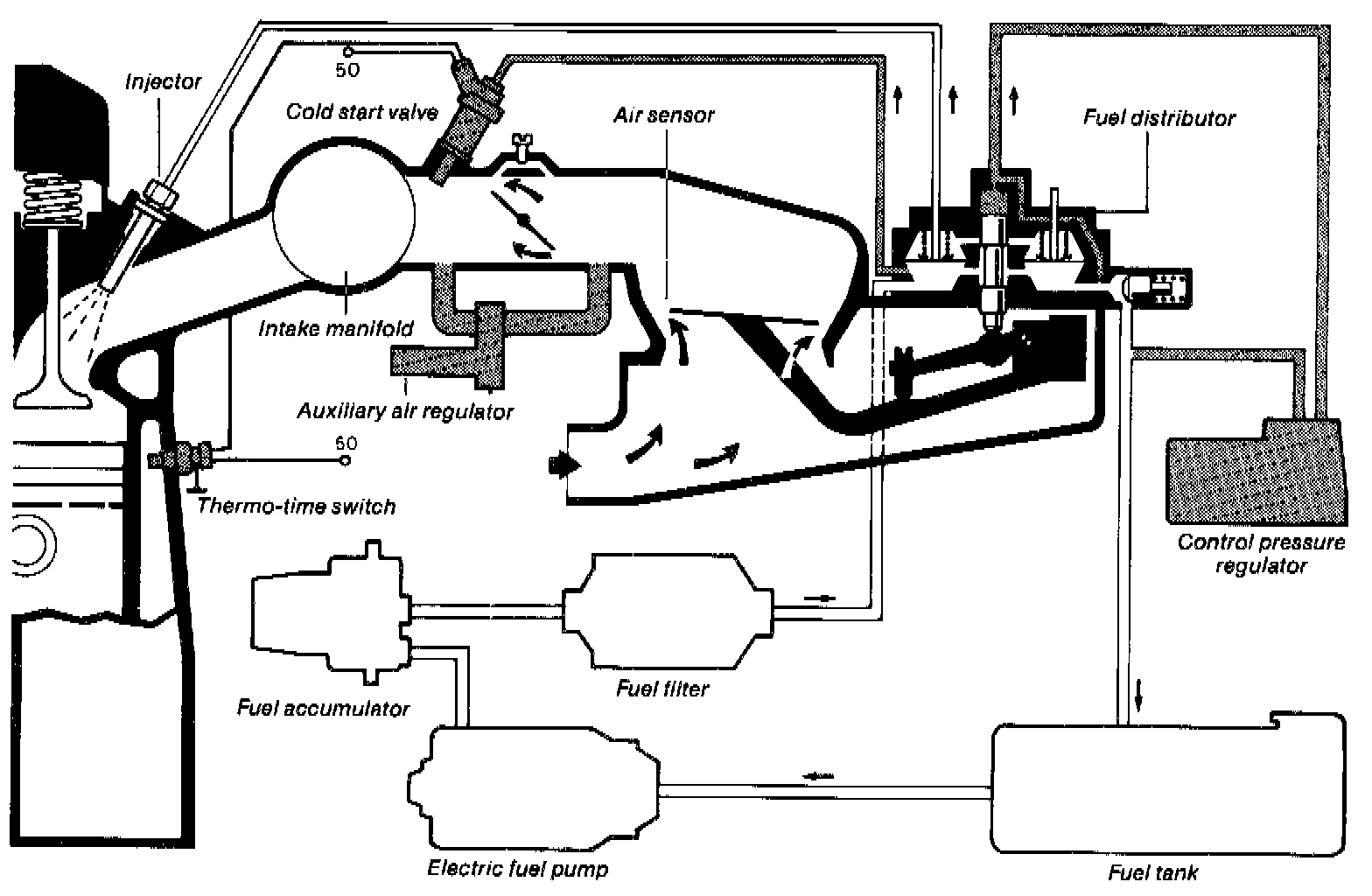 A cold start valve sprays additional fuel directly into the intake manifold when a cold engine is being started.