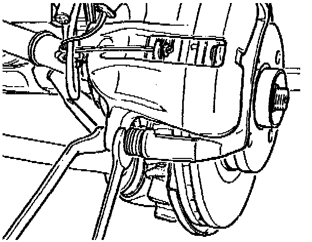 Disconnect brake hoses only when replacing or servicing calipers. When detaching but not removing brake calipers, do not remove hoses. Hang calipers on frame.