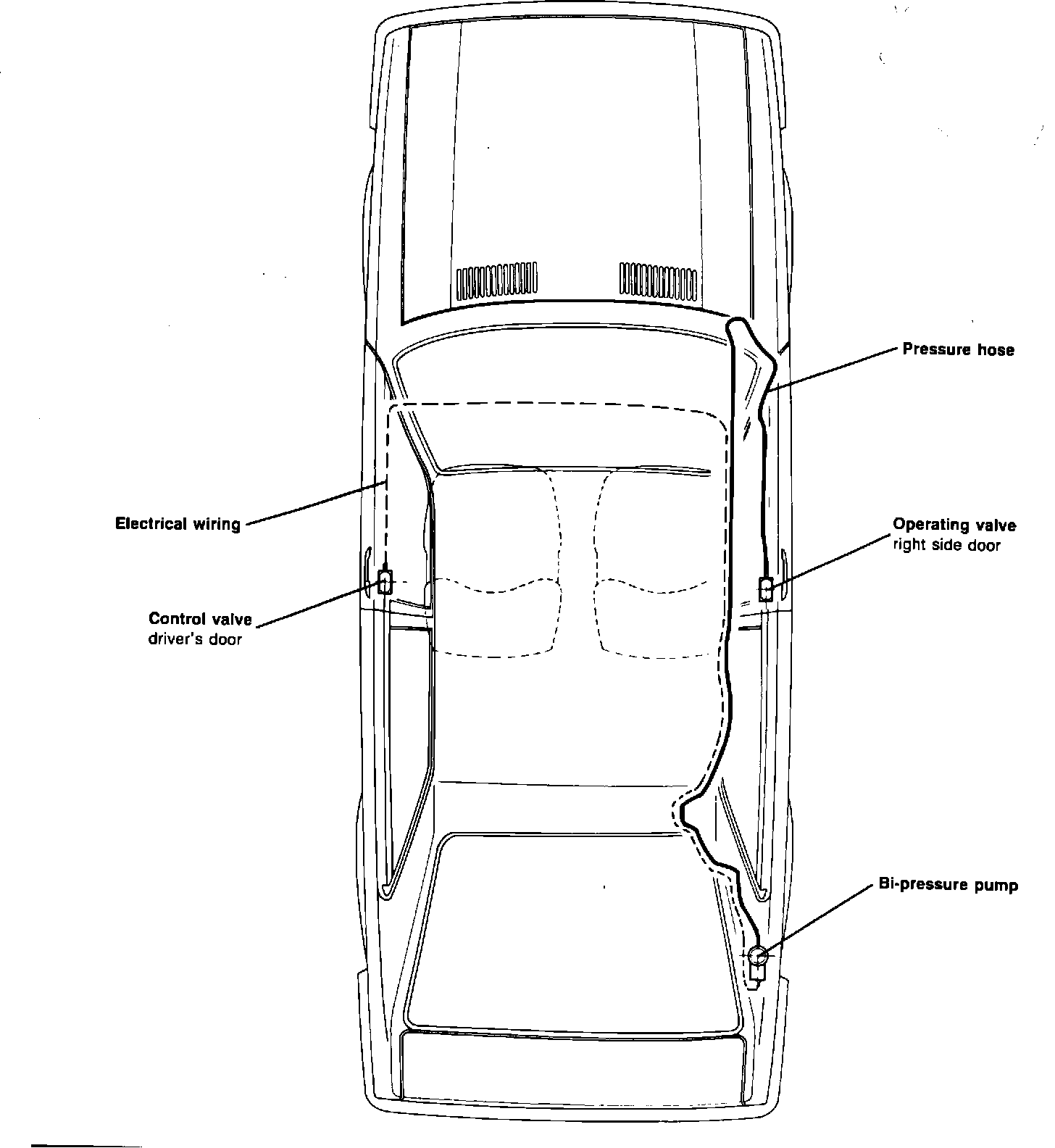 If bi-pressure pump has been replaced, the power operated door locks will only function after being operated several times.