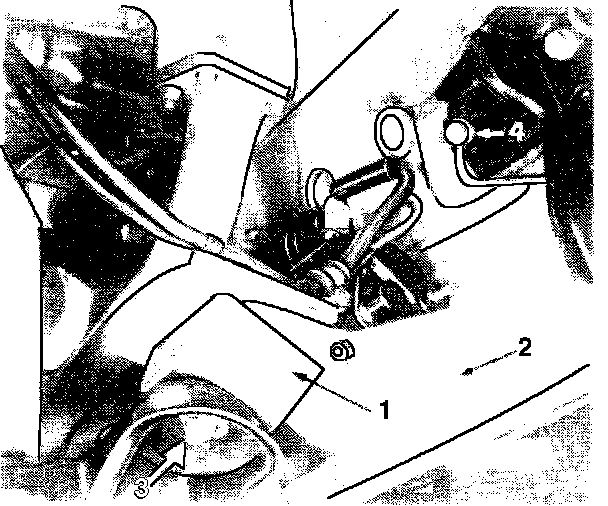 - Remove alternator ground wire (Fig. 2, arrow 4)