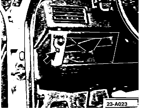 - in underdash trim panel, mark and drill a 9 mm hole approx. 30 mm (13/16 in.) directly below cold-start cable