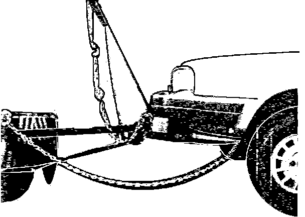 ^ Car may be lifted in rear and moved to position for front hook-up.