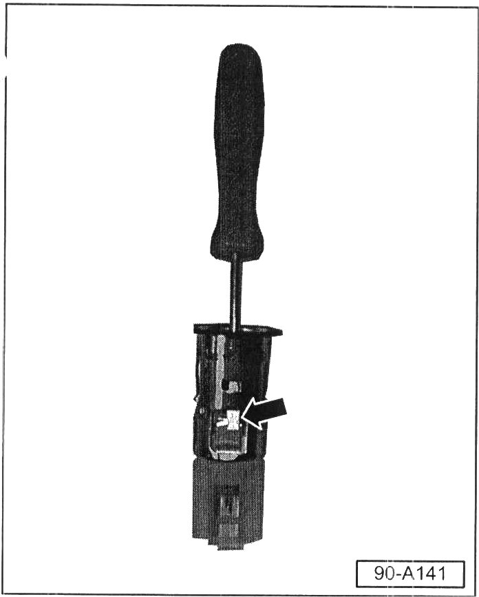 - Using a flat blade screwdriver, bend retaining tabs (2) inward -arrow-.