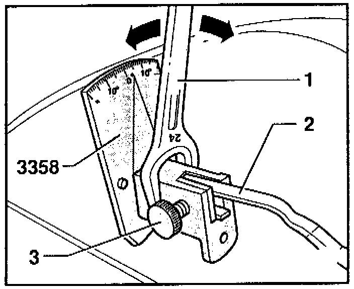 - Apply 24 mm wrench -1- to adjustment tool and twist -arrows- wiper arm -2- according to table (see table).