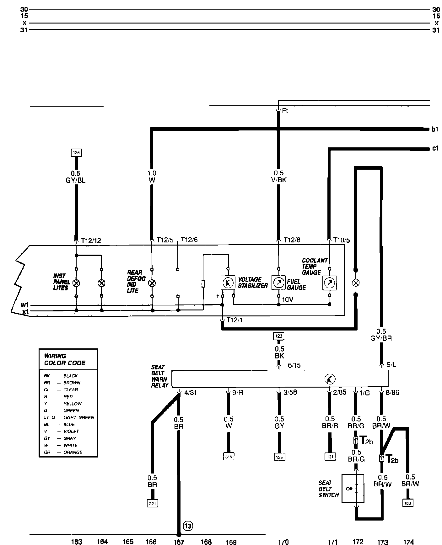 Instrument Cluster, Seatbelt and Rear Window Defogger. Wiring Diagram: