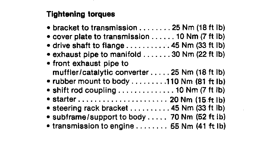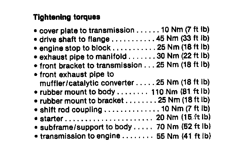 M/T 5-speed 013 Tightening Torque, Control Assembly: