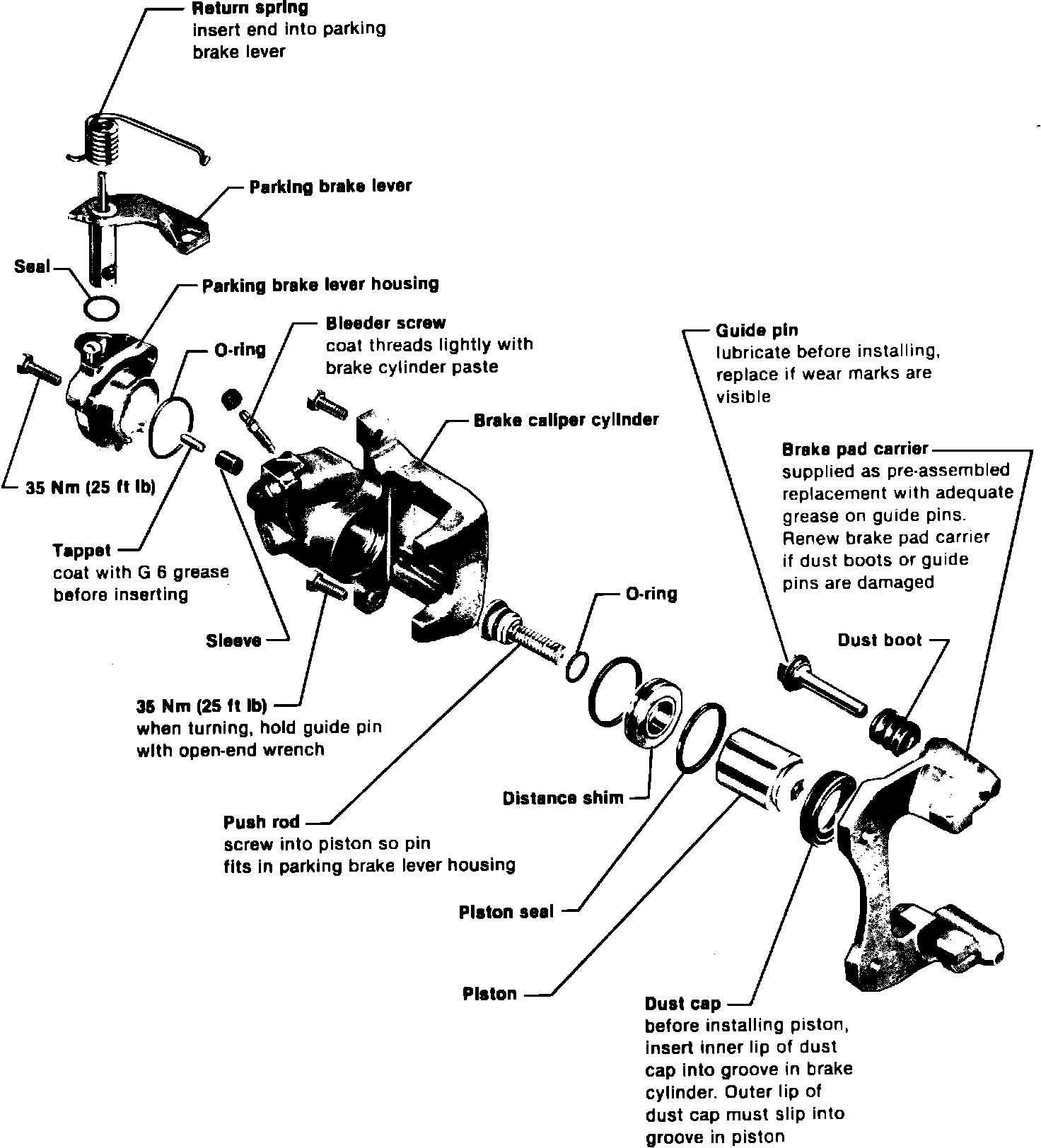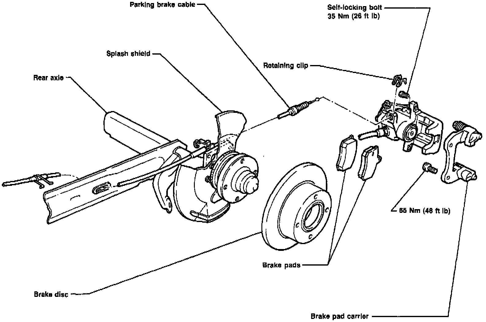 10. After installing new brake pads, check basic setting of rear brake. Go to Parking Brake system, Adjustments for Rear Brake Basic Setting.
