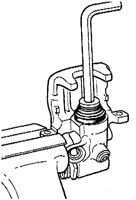 7. Position caliper with bleeder screw facing upward, then connect bleeder hose and open bleeder screw. Fill caliper with clean brake fluid through bleeder screw, then close bleeder valve.