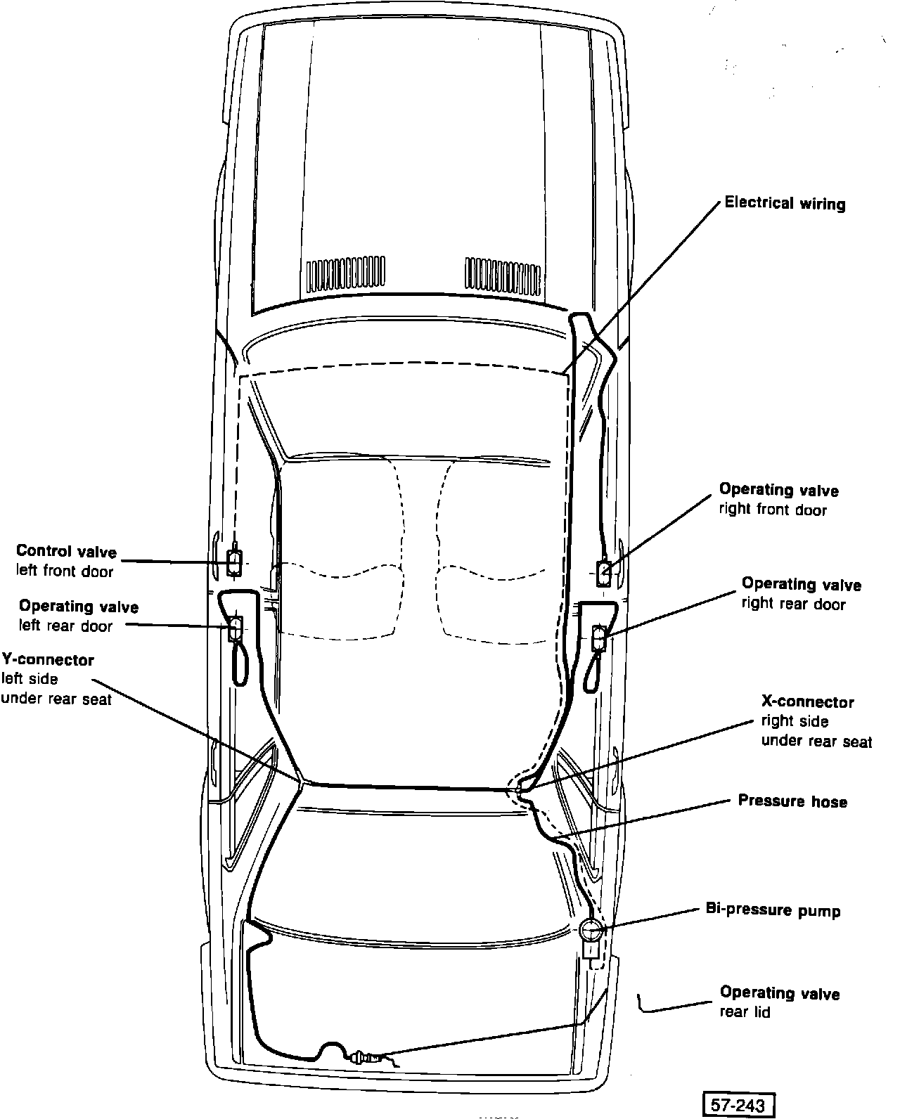 Driver's door contains control valve. Rear lid and other doors have operating valves.